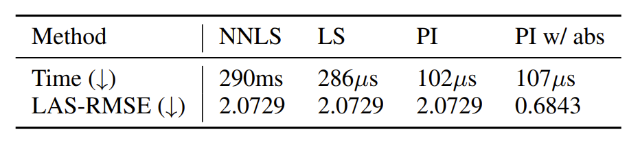 - LS : Least Square, PI : Pseudo-Inverse - 결과적으로 pseudo-inverse method는 $\hat{A}$를 가장 빠르게 계산할 수 있음