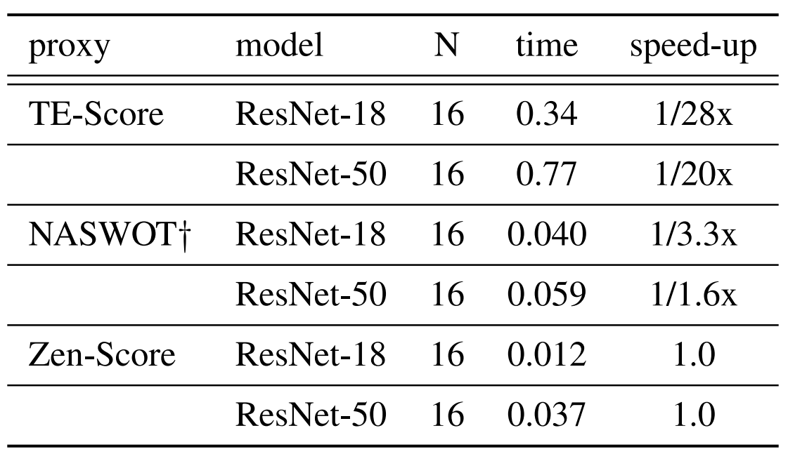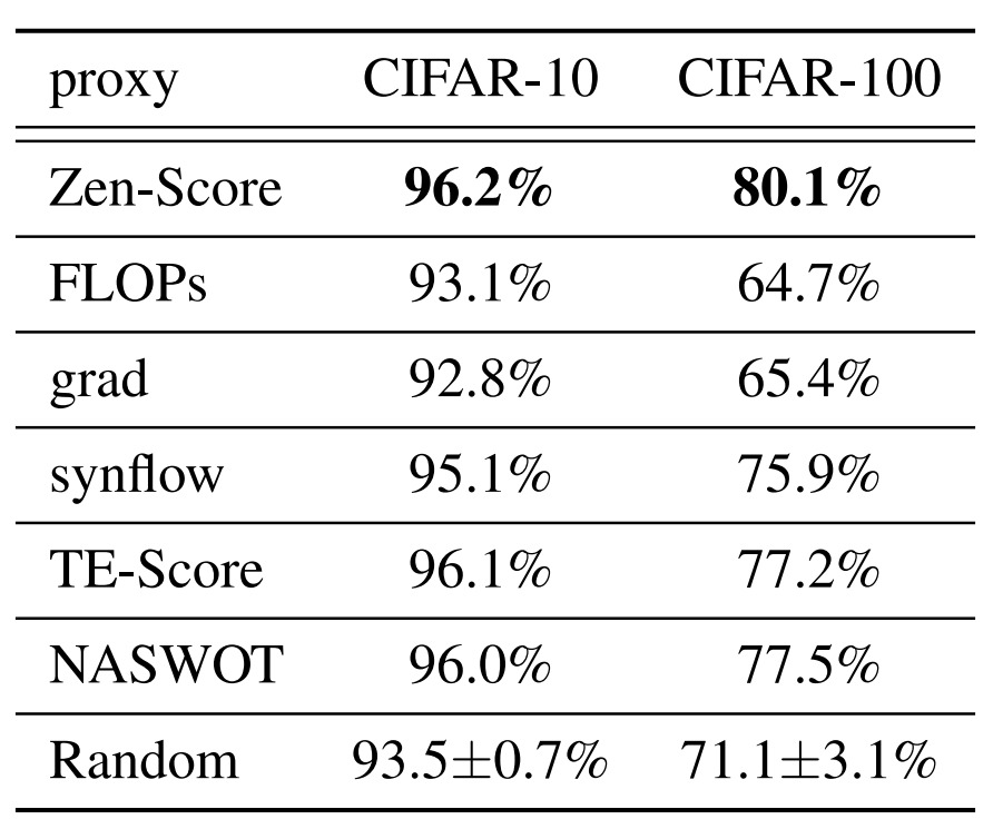 - Zen-Score가 다른 proxy들 보다 가장 좋은 성능을 보임