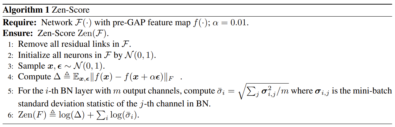 5. $T$ 반복 후 Zen-Score가 가장 큰 network가 Zen-NAS의 출력으로 반환됨