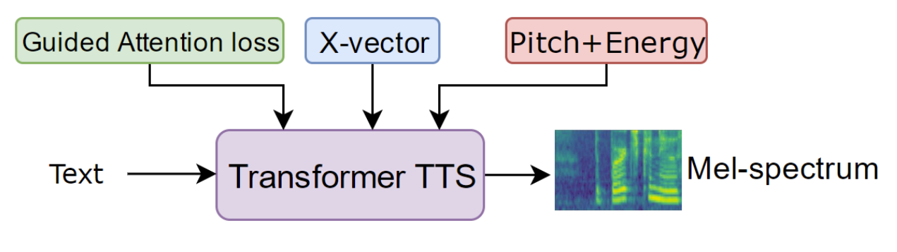 - Pitch, energy information을 additional prosodic information으로 사용하고, pitch/energy pre-network를 통해 high-level representation을 TransformerTTS에 반영