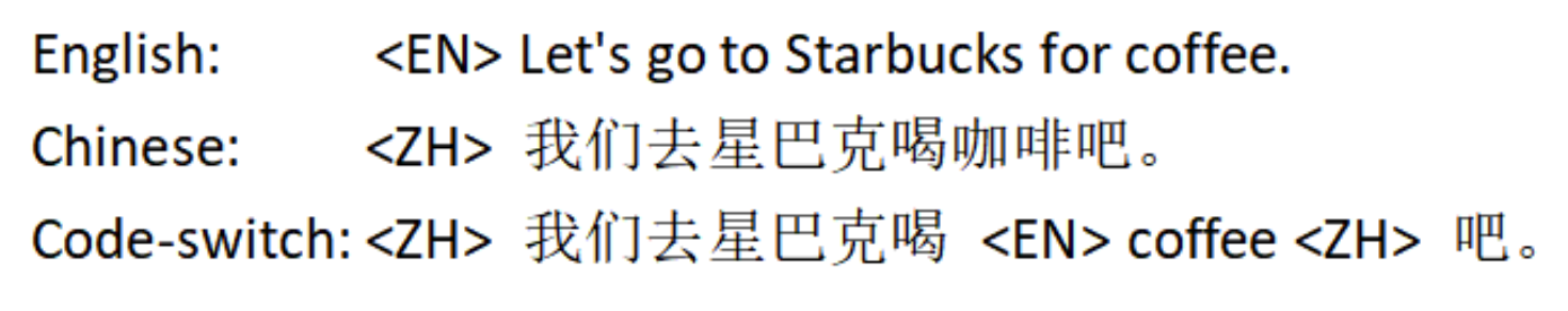 - English, Chinese를 각각 represent 하기 위한 language ID로써, 논문은 $\text{<EN>}, \text{<ZH>}$의 special symbol을 사용함
