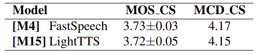 - MOS 측면에서도 기존 FastSpeech와 동일한 수준의 합성 품질을 유지함
