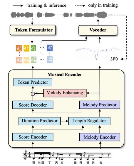- Vocoder는 token과 melody signal을 singing waveform으로 변환하는 역할