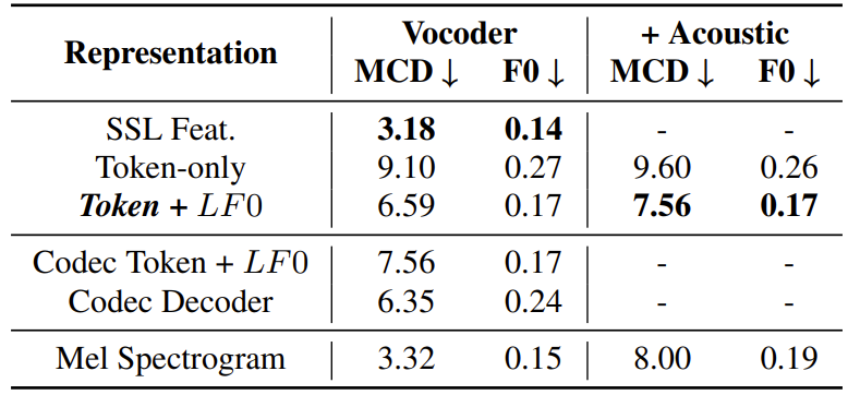 - Vocoder 측면에서 token만 사용하는 경우 성능 저하가 발생할 수 있음