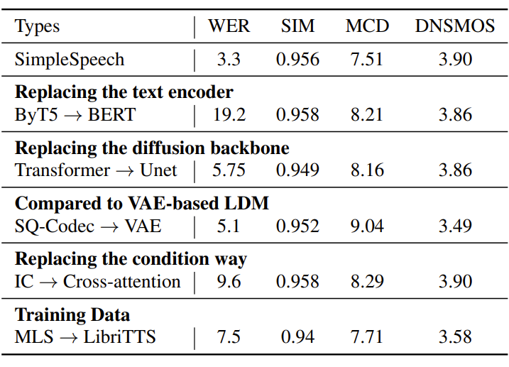- Ablation Study of SimpleSpeech