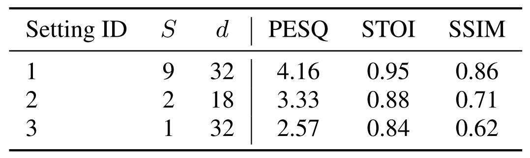 - SQ-Codec은 $S, d$의 크기를 늘릴수록 성능이 좋아지는 것으로 나타남