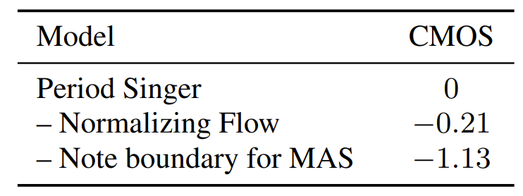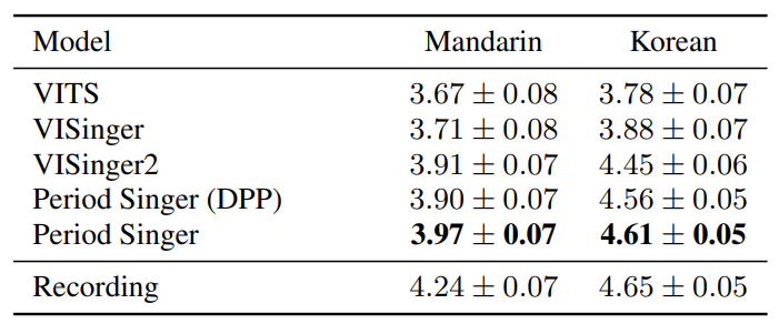 - MOS 측면에서 PeriodSinger는 가장 우수한 성능을 달성함