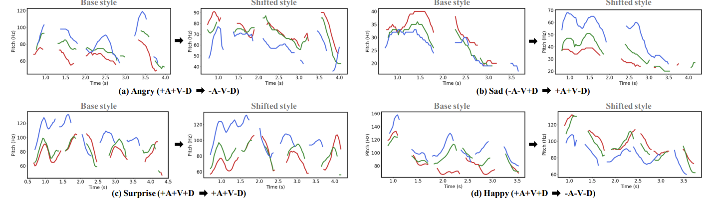 - Style vector가 shifting 되는 경우, emotion intensity pattern이 shifted axis에 따라 변화함