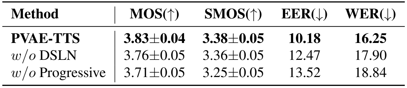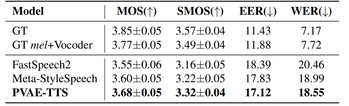 - 전체적으로 PVAE-TTS가 가장 우수한 성능을 달성함