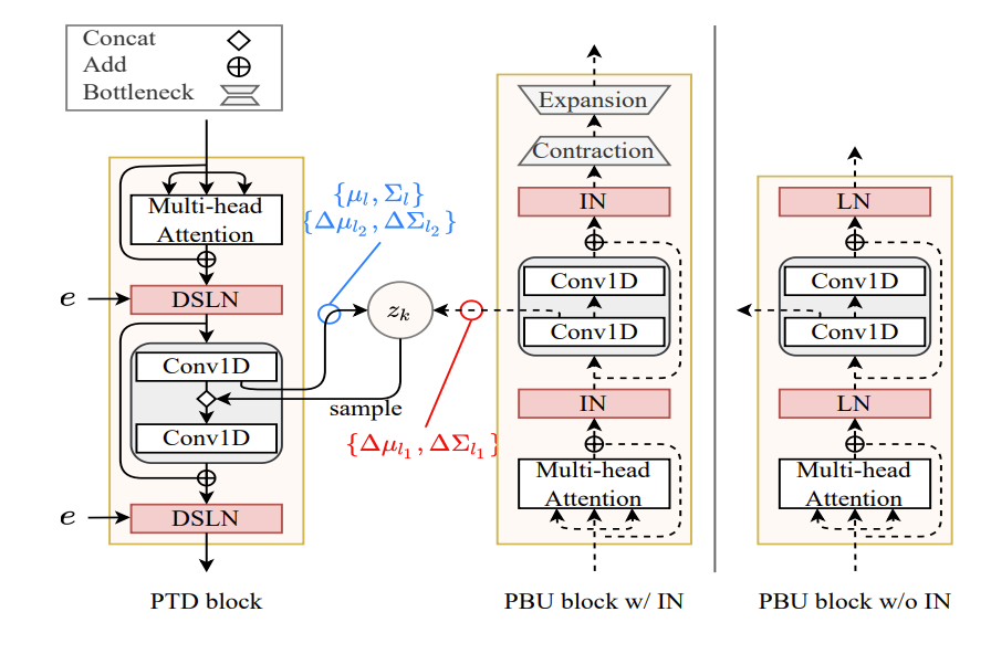 - 결과적으로 아래 그림과 같이 모든 PTD block에 DSLN이 추가되고, 해당 DSLN을 통해 PVAE-TTS는 high-adaptation을 지원할 수 있음