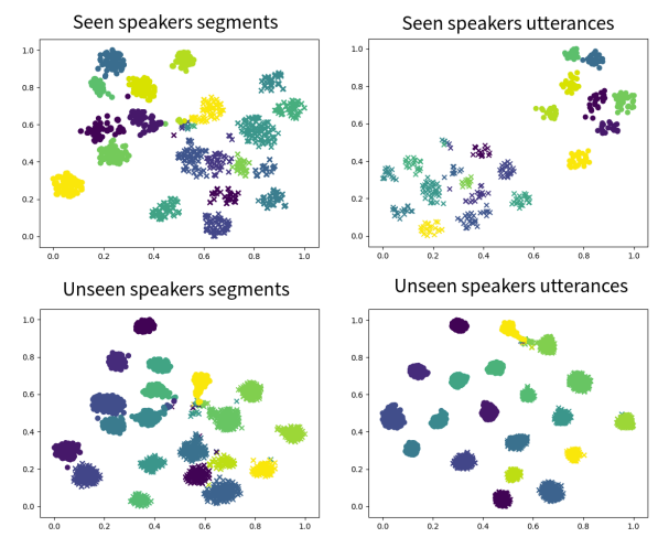 - t-SNE를 통해 embedding을 시각화하면, 다른 speaker에 대한 utterance가 well-separate 되어 나타나는 것을 확인할 수 있음