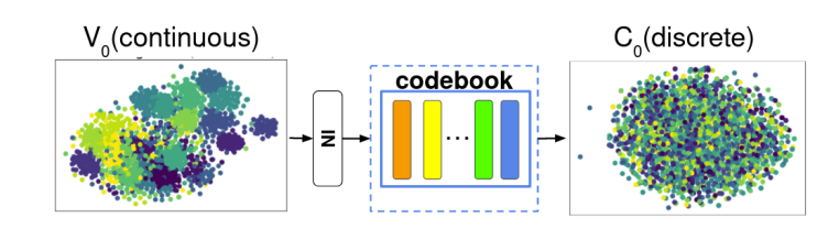 - Strong information bottleneck을 위해 latent vector를 quantize 하는 vector quantization을 도입