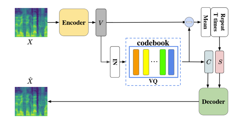 - Instance Normalization (IN)는 quantization 이전에 추가되고, speaker information은 global information으로 취급됨