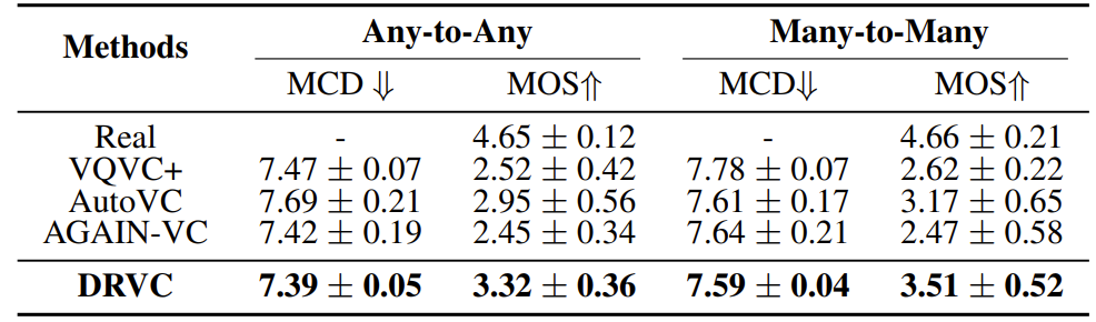 - BUT, 기존의 disentangle-based model은 speaker/content style information를 얻는 과정에서 untangle overlapping 문제가 발생함 - DRVC (Disentangled Representation Voice Conversion)