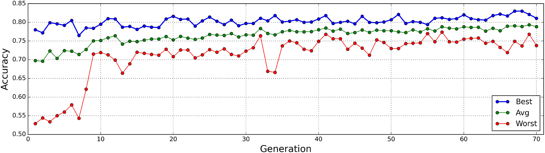 - 최고 Accuracy와 평균 CA 모두 generation이 진행됨에 따라 증가하는 경향을 보임