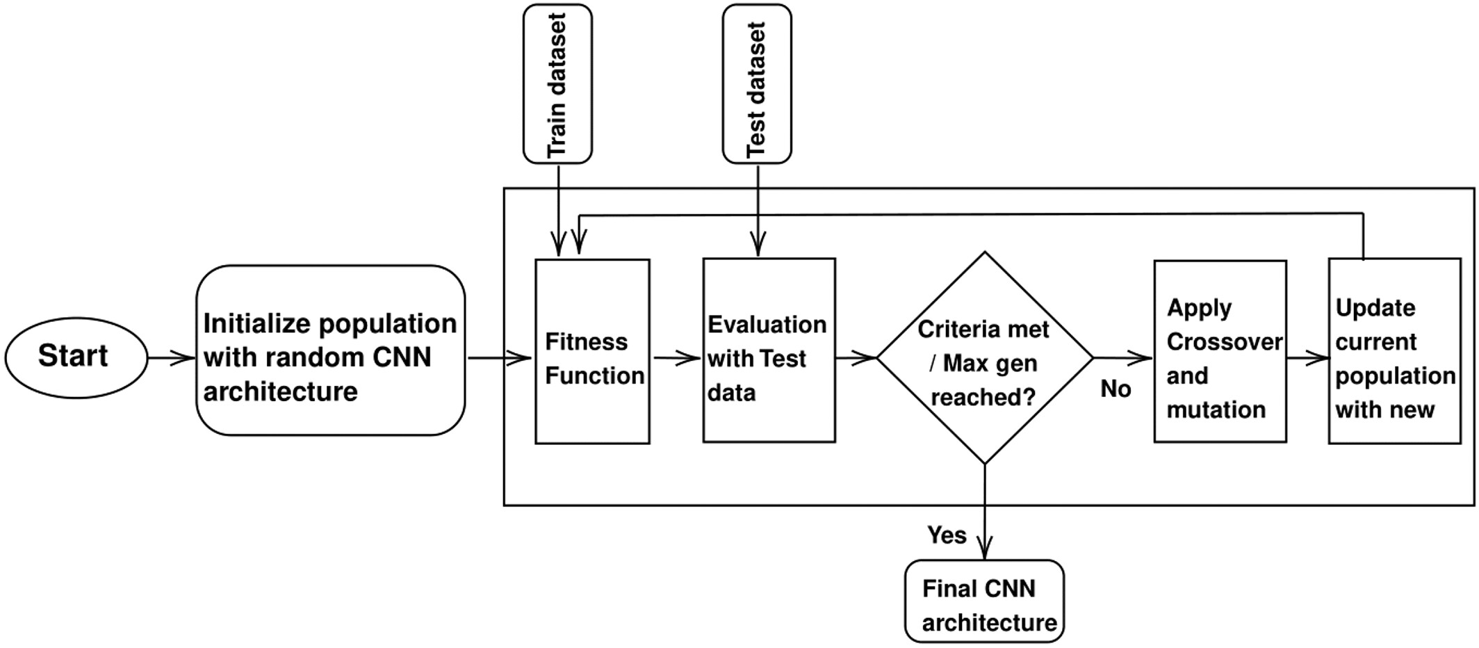 3. CNN architecture를 encoding 하는 각 candidate fitness는 evolution 과정에서 사용되는 dataset을 통해 평가