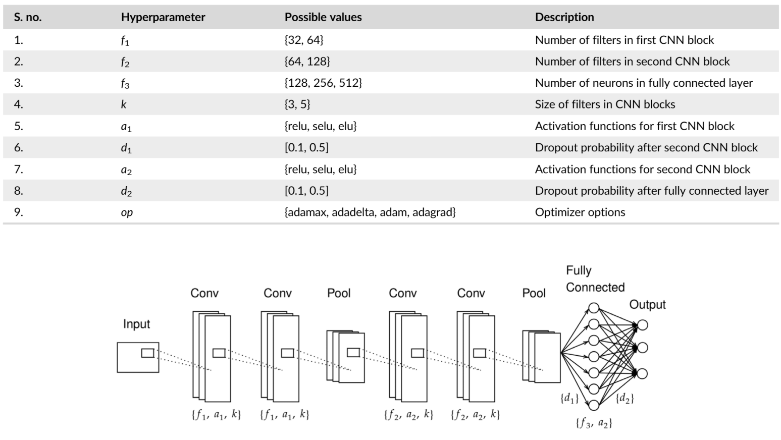 3. $\{a_{2}, d_{2}, op \}$ : 두 번째 CNN 블록에 대한 activation function, dropout 확률, optimizer