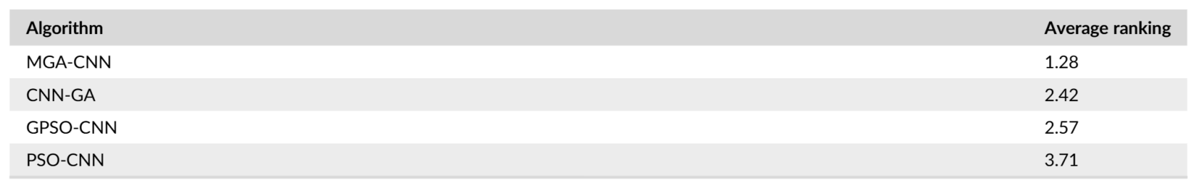 - Comparisons : GPSO-CNN, PSO-CNN, CNN-GA