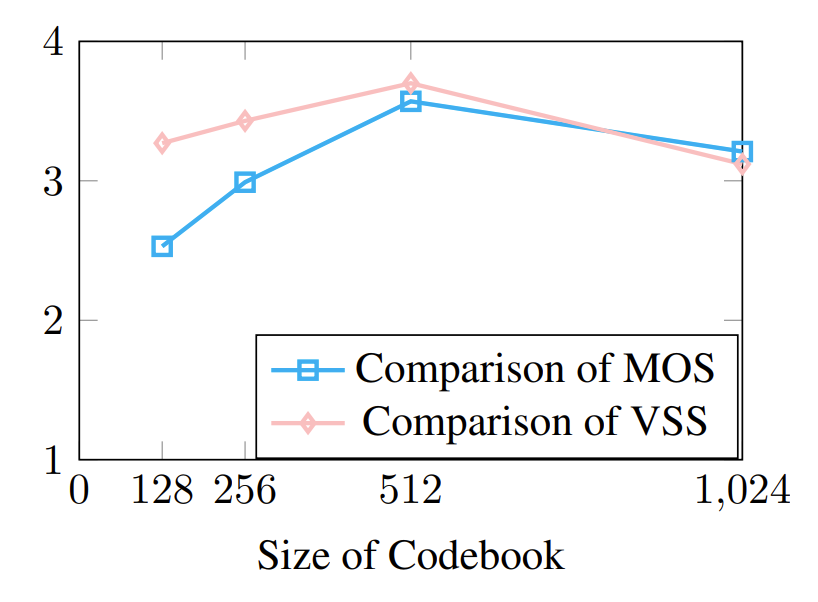 - 논문에서는 512 codebook size를 채택