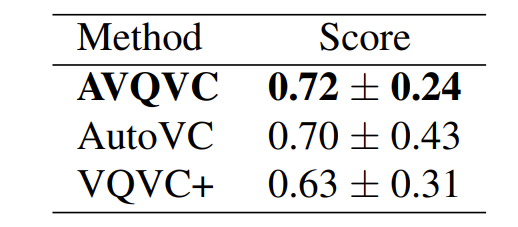 - 전체적으로 AVQVC가 가장 우수한 성능을 보임