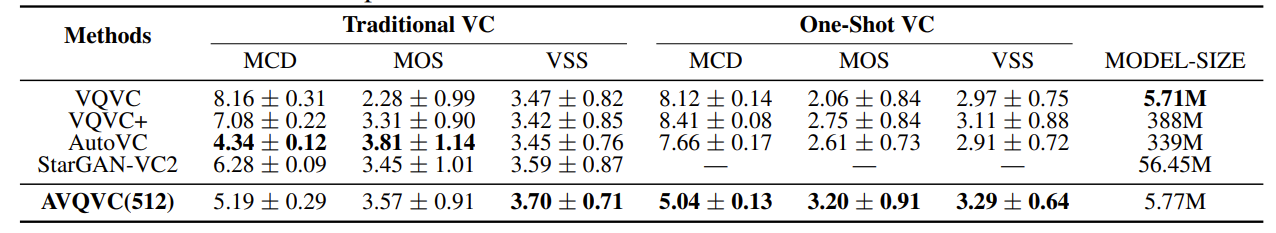 - One-Shot VC 측면에서도 AVQVC의 성능이 가장 뛰어남