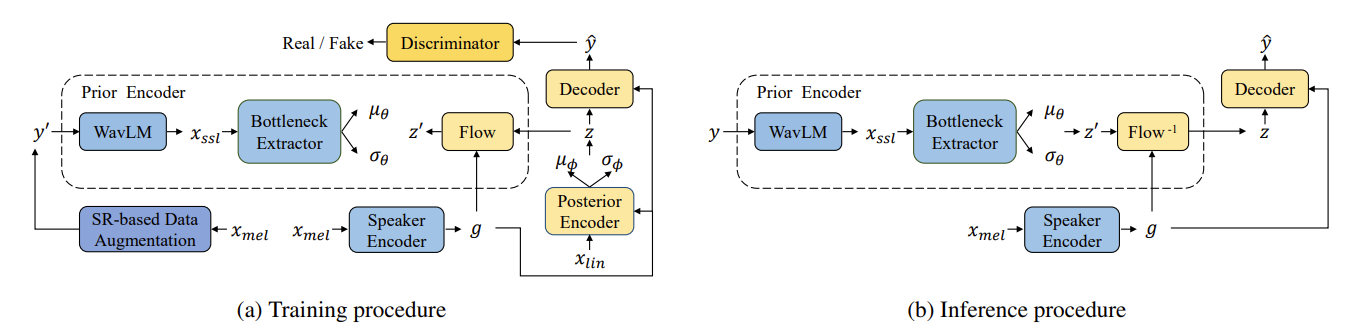- Prior encoder는 WavLM, bottleneck extractor, normalizing flow로 구성됨