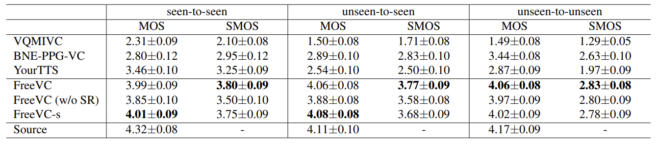 - MOS 측면에서 FreeVC가 가장 우수한 성능을 보임