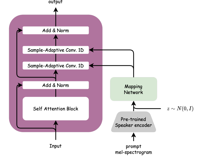 - 여기서 논문은 filter capacity를 늘리기 위해 acoustic decoder의 transformer block을 sample-adaptive kernel selection-based convolution layer로 대체함