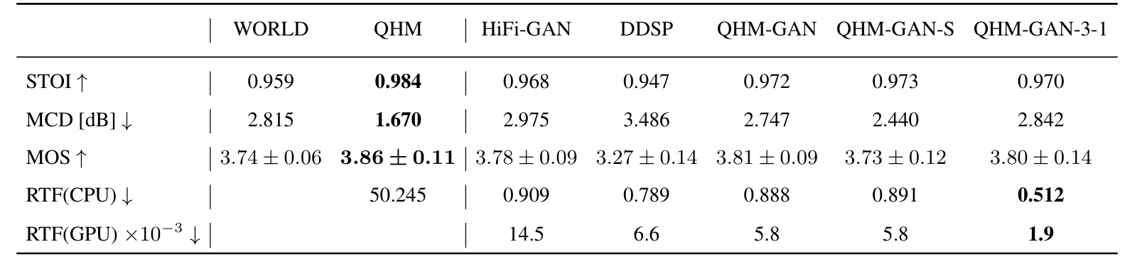 - QHM과 neural vocoder를 결합하여 합성 품질, 추론 속도, controllability를 향상