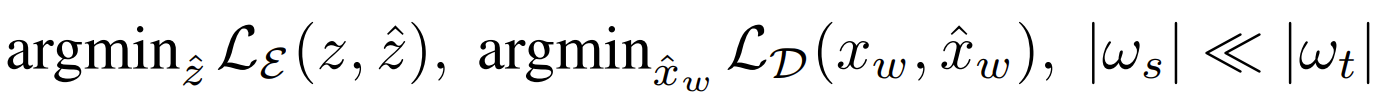 - $F_{s}$는 $F_{t}$에 가깝게 대응시키는 $\hat{z}$ 및 $\hat{x}_{w}$를 $E_{s}$를 통해 생성 - $F_{t}$ : teacher model, $F_{s}$ : student model
