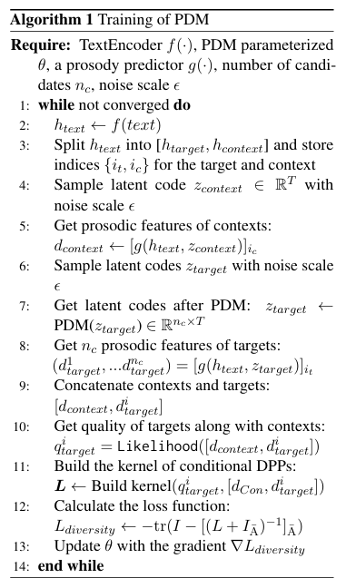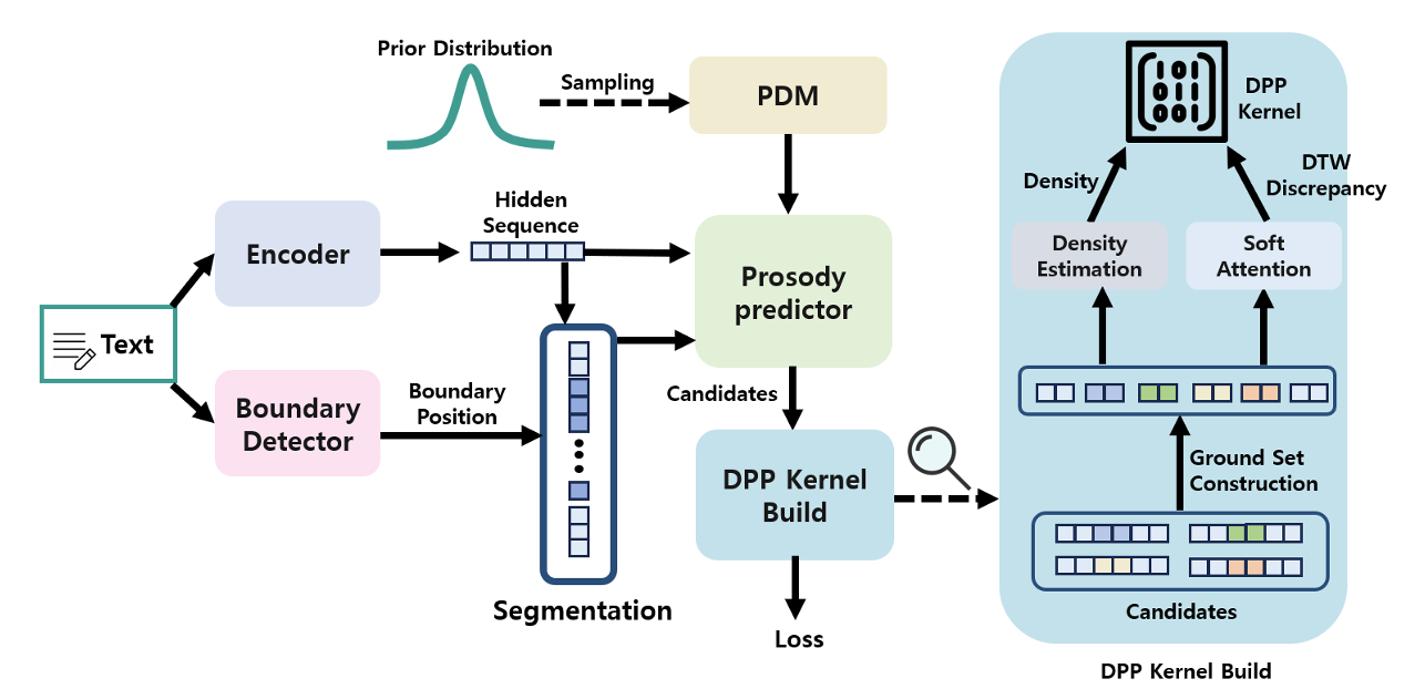 - 결과적으로 DPP-TTS는 추론 시 PDM에 의해 여러 prosodic candidate가 생성됨