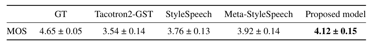 - Comparisons : Tacotron2, StyleSpeech, Meta-StyleSpeech, FastSpeech2