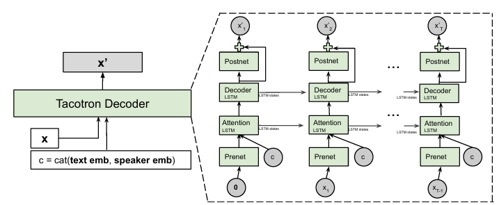 - Flowtron은 Tacotron의 Prenet, Postnet layer를 제거하여 구성됨