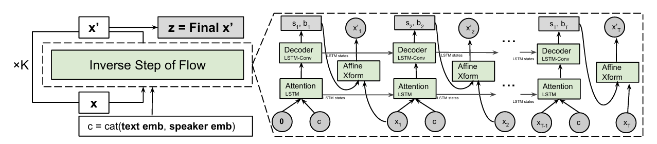 - Mel-spectrogram 합성을 위한 autoregressive flow-based generative network