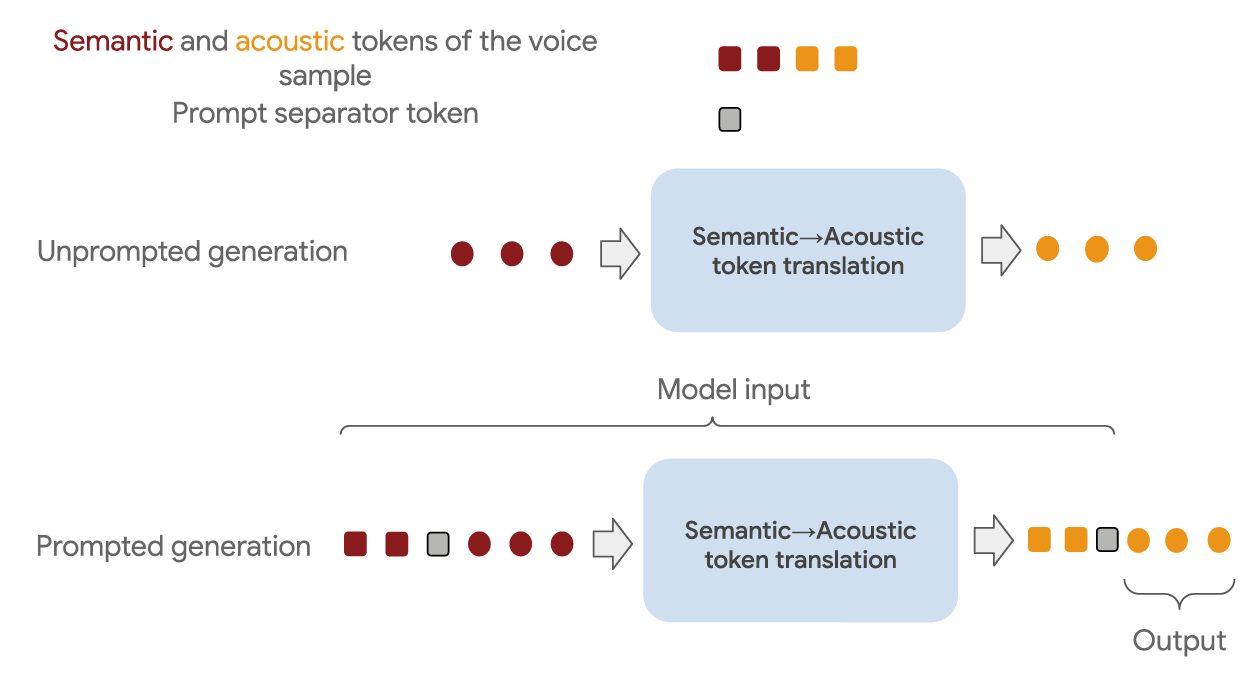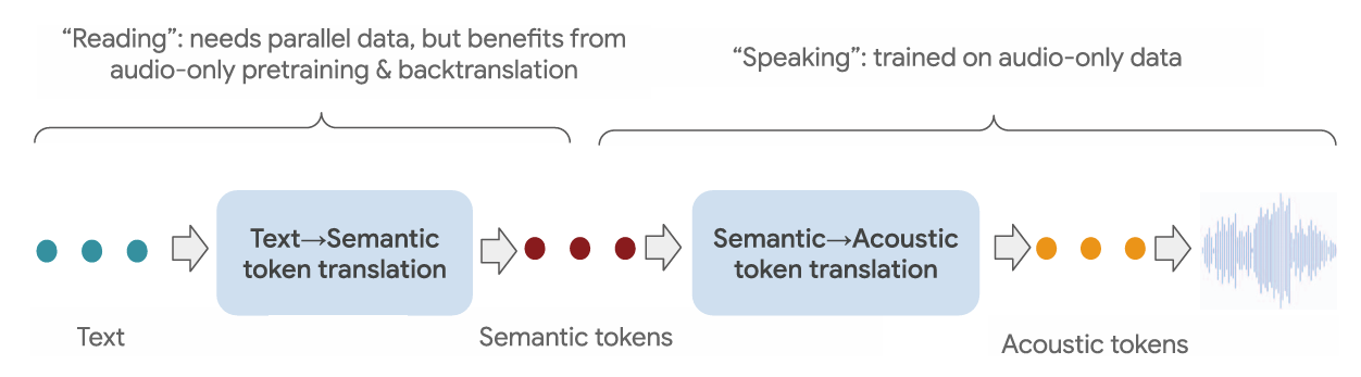- 즉, TTS는 text를 semantic token으로 translating하고 semantic을 acoustic token으로 translating 하는 sequence-to-sequence (seq2seq) task로 취급될 수 있음