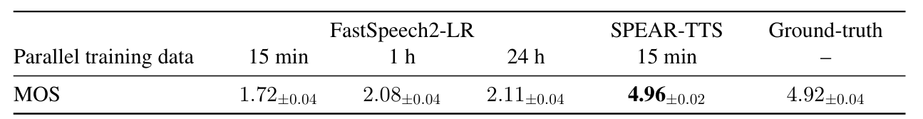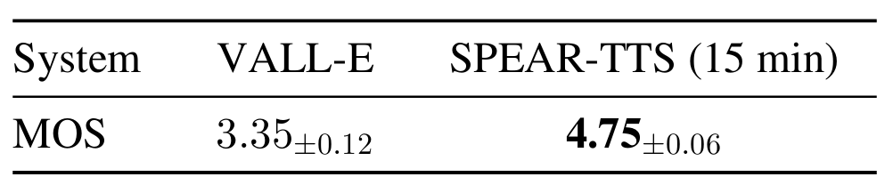 - MOS 측면에서 SPEAR-TTS의 성능이 가장 뛰어남