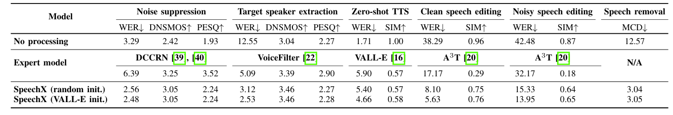 - 결과적으로 zero-shot TTS, speech editing, speaker extraction 등 다양한 task에서 기존보다 뛰어난 성능을 달성