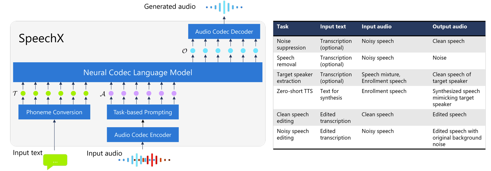- SpeechX는 VALL-E의 principle을 따라 Transformer를 기반으로 하는 neural codec language model을 활용함