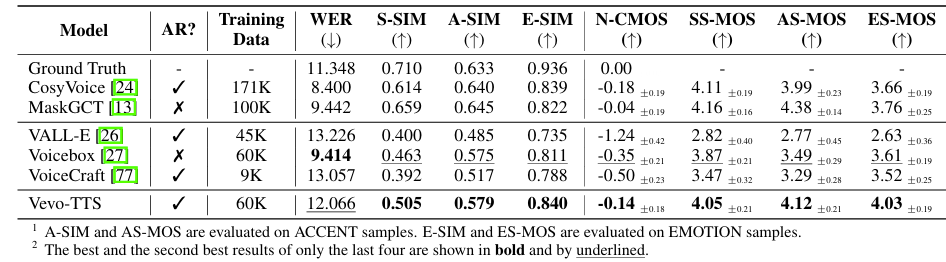 - Vevo는 accent/emotion corpus에 대한 fine-tuning 없이도 기존보다 우수한 성능을 보임