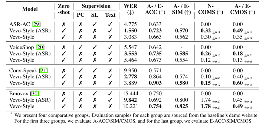 - Style Imitation : ASR-AC, VoiceShop, Conv-Speak, Emovox