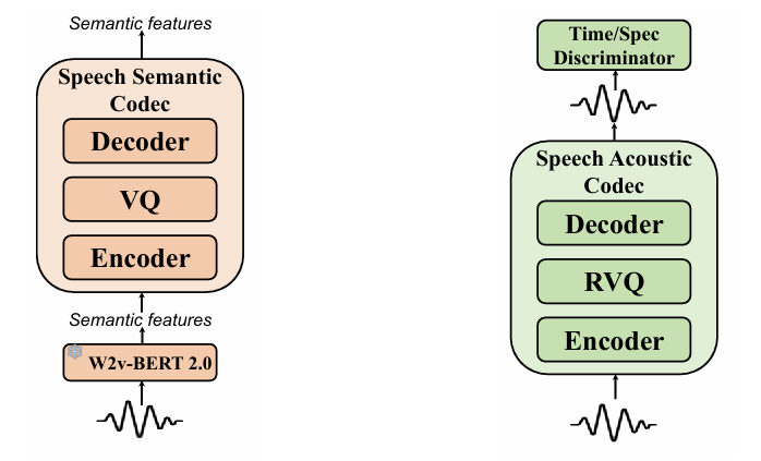 - Speech acoustic codec은 speech information을 preserve 하면서 speech waveform을 multi-layer discrete token으로 quantize 하도록 training 됨