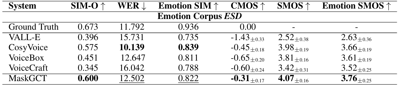 - MaskGCT는 accent, emotion과 같은 speech style을 효과적으로 반영할 수 있음