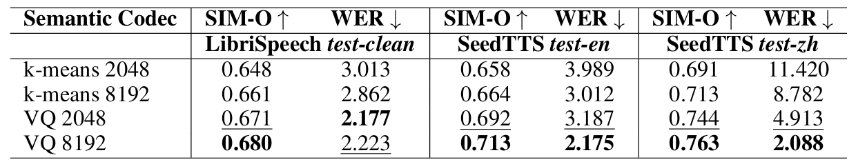 - 추가적으로 기존의 $k$-means 대신 VQ-VAE를 채택하여 speech self-supervised semantic token embedding을 quantize