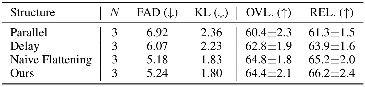 - AudioLM, SpearTTS와 같은 기존의 LLM-based audio generation model은 generation quality를 위해 flattened format으로 audio token sequence를 modeling 함
