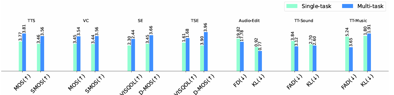 - 한편 각 task를 independent하게 처리하지 않고 unified model을 통해 multiple audio generation을 수행할 수 있음