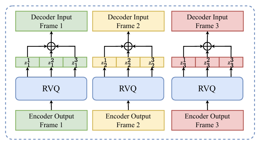 - Multiple quantization layer를 사용하여 quantization error를 progressively reduce 하고 더 나은 reconstruction performance를 달성할 수 있기 때문 - RVQ를 채택하면 quality, efficiency 간의 trade-off가 발생함