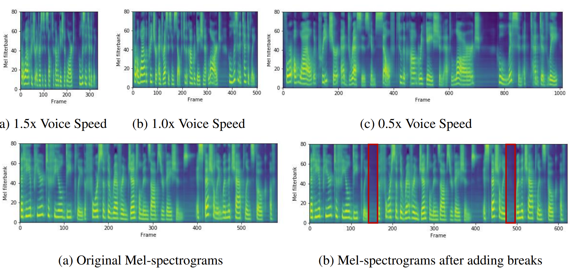 - Length 조절 전후의 mel-spectrogram을 비교 - Voice Speed