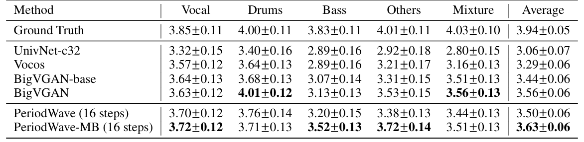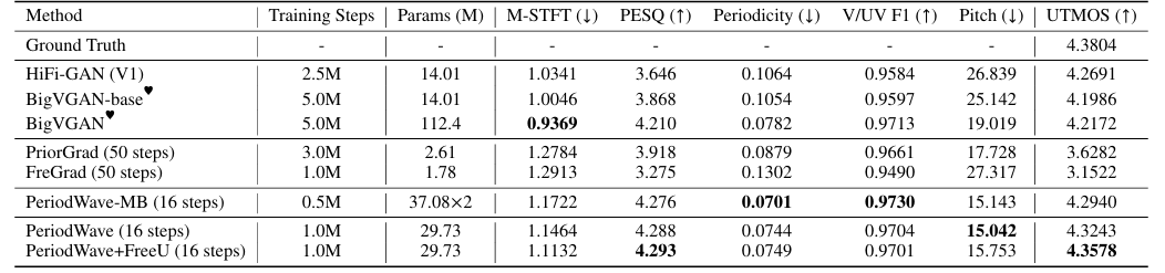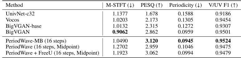 - PeriodWave는 기존보다 뛰어난 성능을 보임