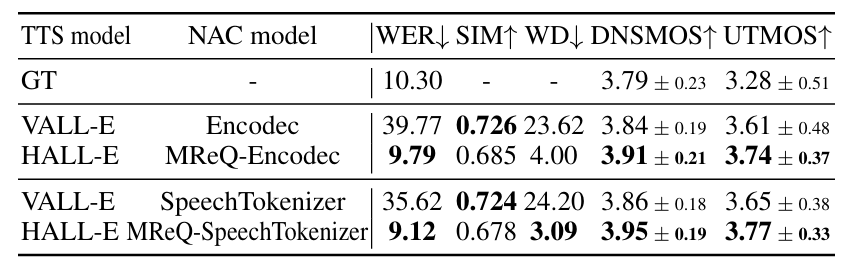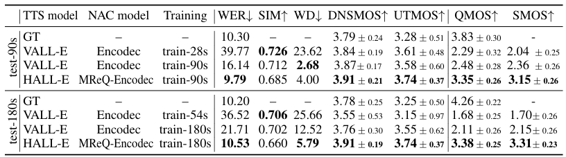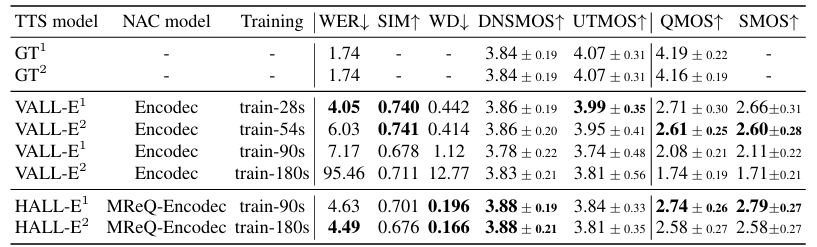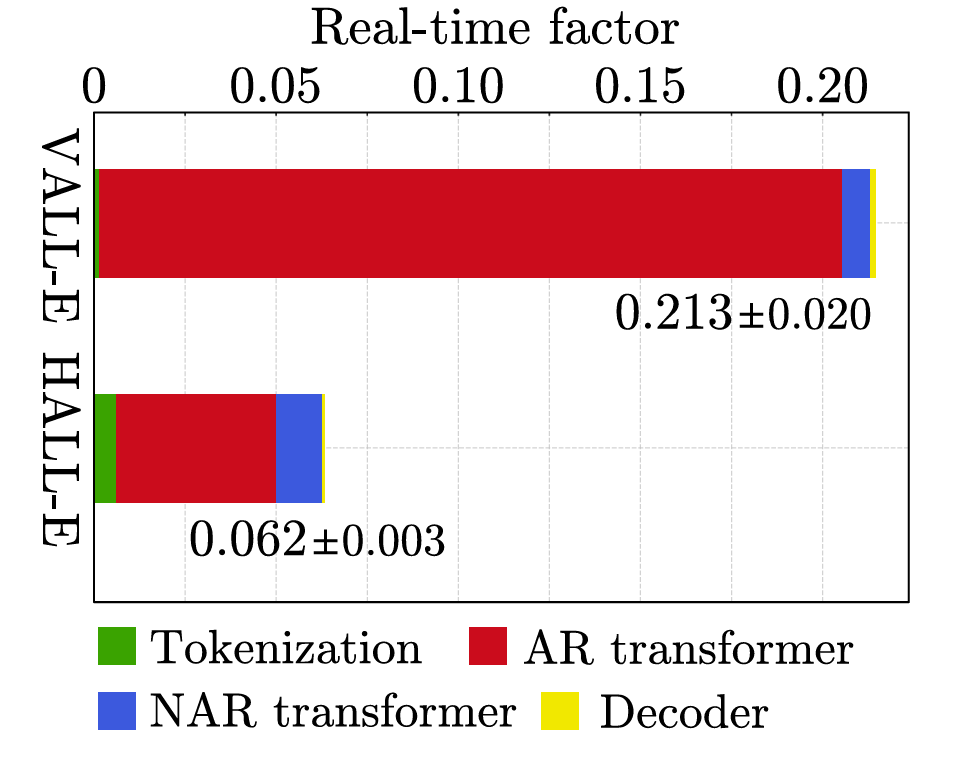 - RTF 측면에서도 HALL-E는 VALL-E 보다 $\times 3.4$ 빠름