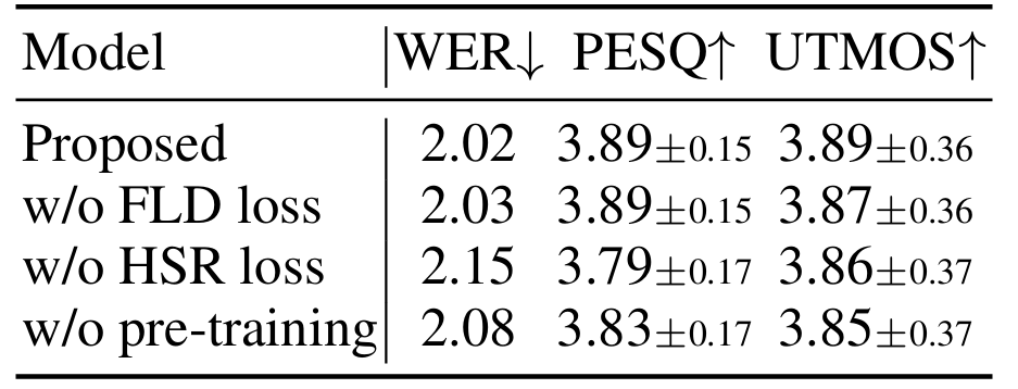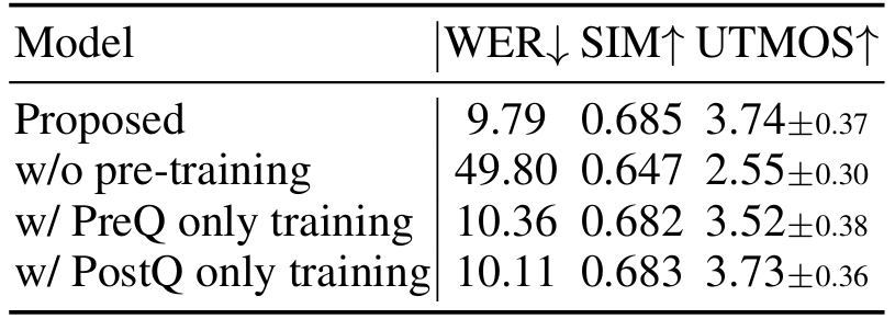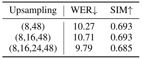 - 결과적으로 SpeechTokenizer와 같은 state-of-the-art NAC model을 사용하는 경우 lower frame rate에서 더 우수한 성능을 달성할 수 있음